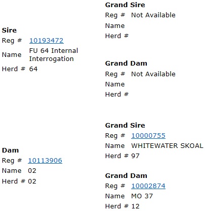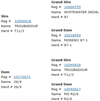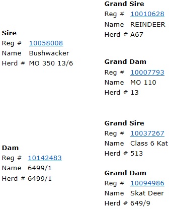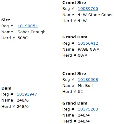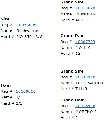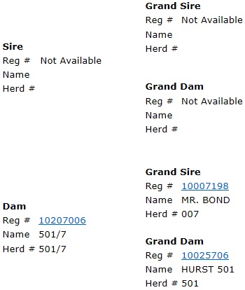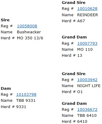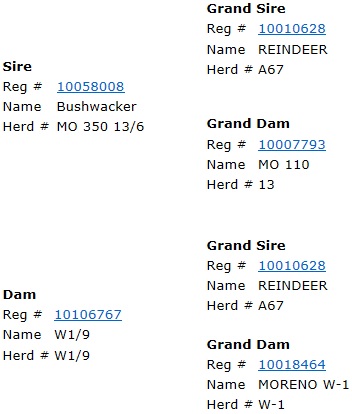 | Dam is a Mr. Bond Daughter that goes back to M17 w/ Thomas Taylor breeding. Taking it way back! |